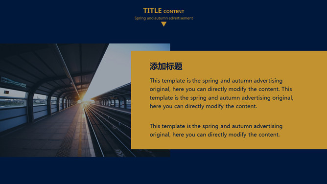 欧美风简约大气商务PPT模板。一套欧美范商务风格幻灯片模板,深蓝金色配色,简约大气,适合商务场合使用。