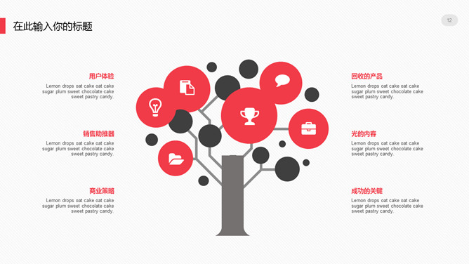 极简设计多功能通用PPT模板。一套大方极简设计幻灯片模板,浅灰色背景,黑红配色,多图形图表页面,通用性强。