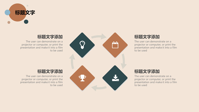简洁圆点莫兰迪色PPT模板。一套简约通用幻灯片模板,时尚莫兰迪配色,圆点泡泡装饰,动态播放效果。