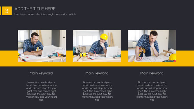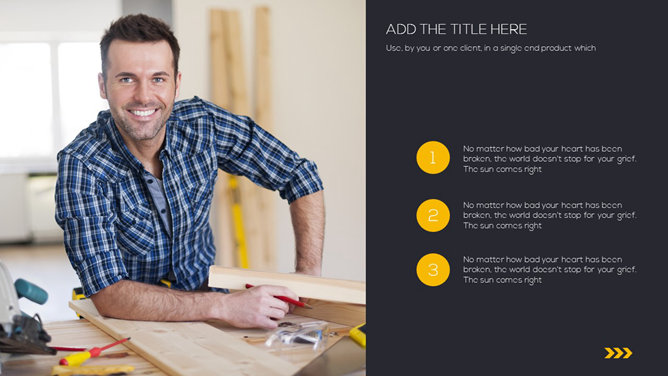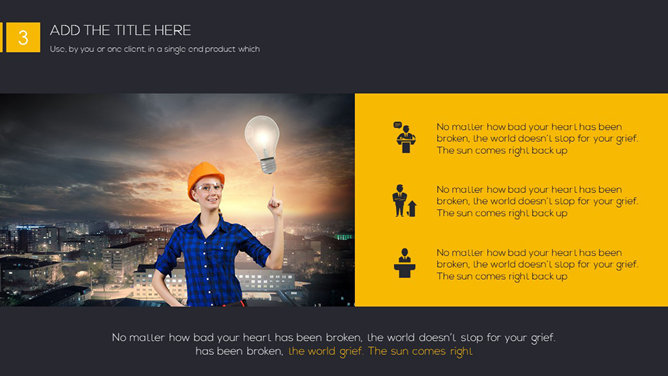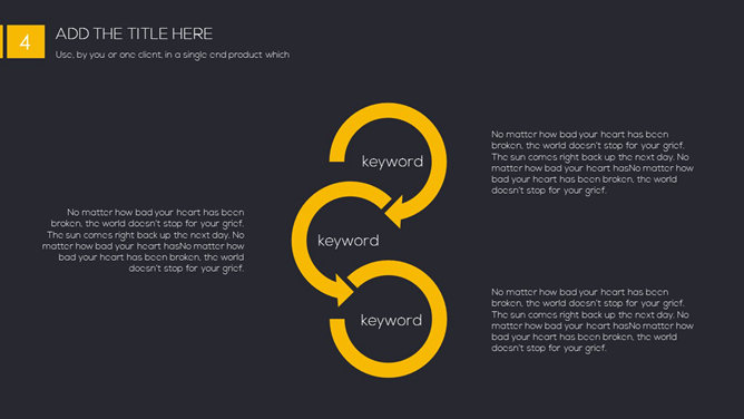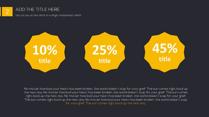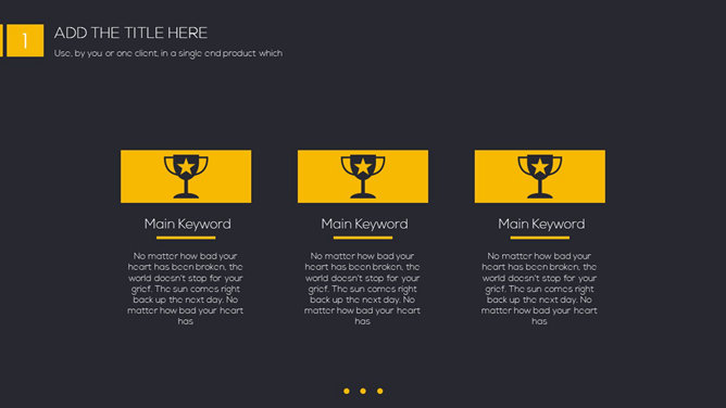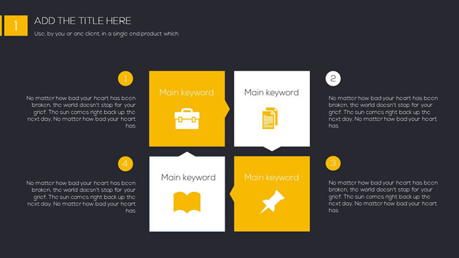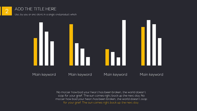 一份精美简约PPT模板,黑色黄色配色,很有视觉冲击力,漂亮的动态播放效果,更多同类模板请参阅:简约PPT模板。