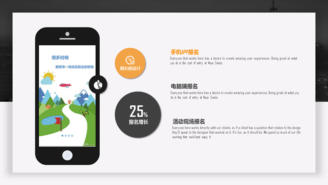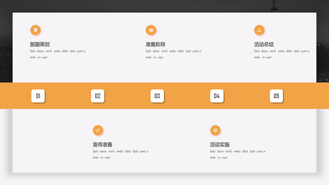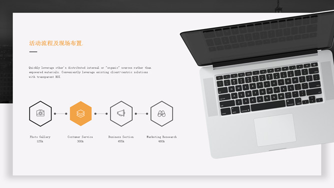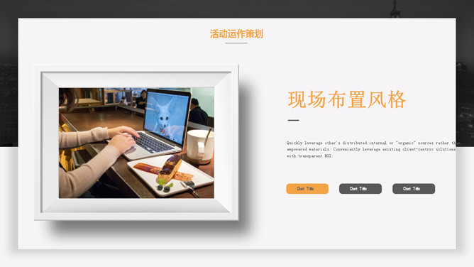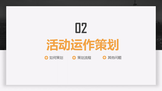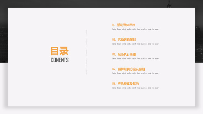 简约活动策划计划报告PPT模板。一套活动策划履行计划报告幻灯片模板,包括活动全体思路、活动运作策划、现场履行战略、预算经费计划及预期和应急预案及其他等部分。