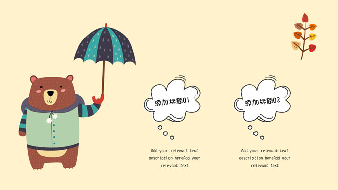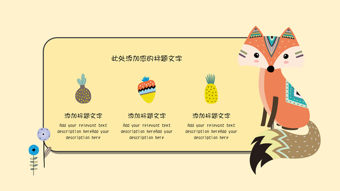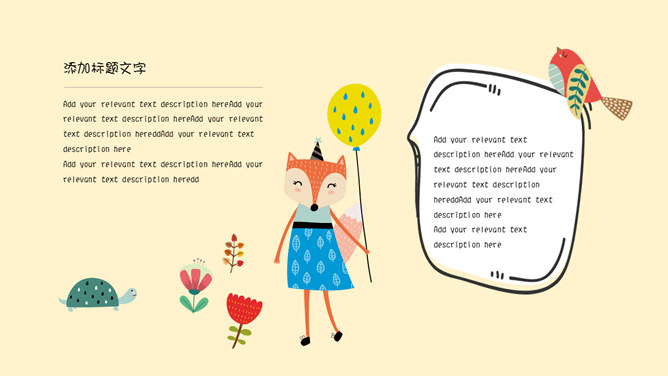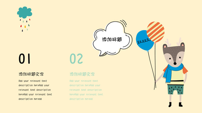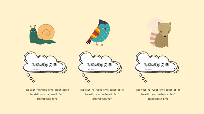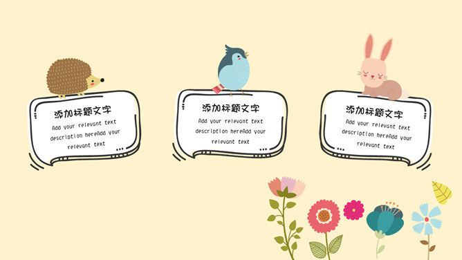 心爱卡通动物课件PPT模板。一套卡通风格幻灯片模板,心爱小动物素材规划,精约清新,合适儿童教育课件使用。