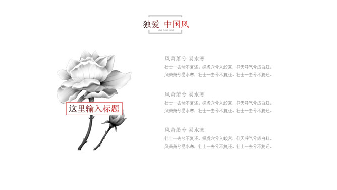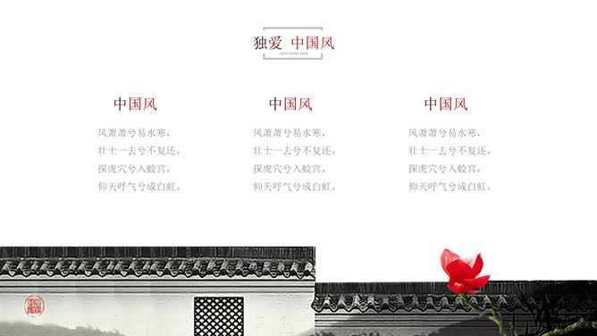 简洁素雅新中式中国风PPT模板。一套精巧极简设计中国风幻灯片模板,黑红配色,精约素雅大方,新中式设计风格。