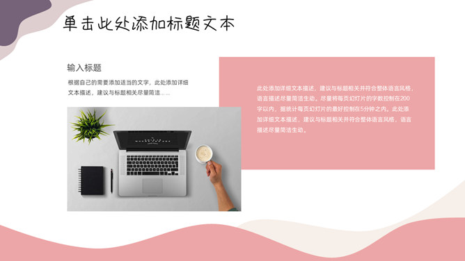 简洁动感莫兰迪色PPT模板。一套简约通用幻灯片模板,淡雅莫兰迪配色,动感色块装饰,合适工作汇报等用处。