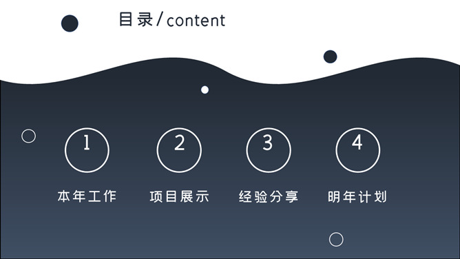 简练通用年终总结PPT模板。一套年终工作汇报总结幻灯片模板,精约大气,深蓝主色调,通用性强,动态播映效果。