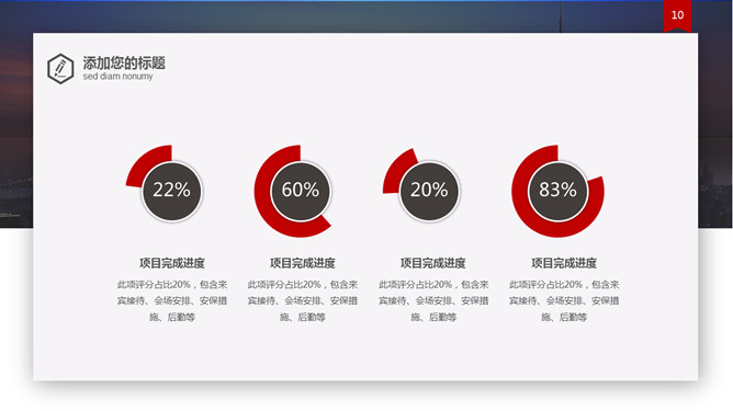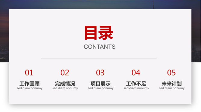 工作报告总结报告PPT模板。一套工作报告总结幻灯片模板,经典黑红配色,悬浮卡片视觉效果,简约大气,动态播映。