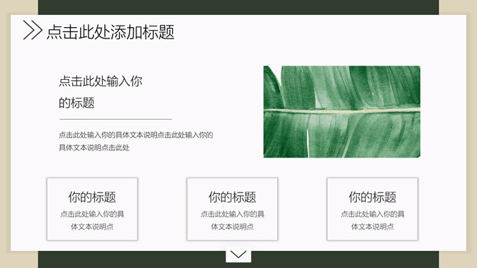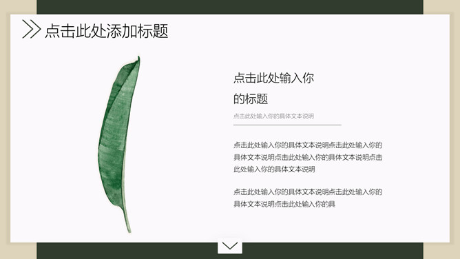 新鲜淡雅绿色叶子PPT模板。一套新鲜淡雅规划幻灯片模板,素雅布景,新鲜绿色叶子装饰,适合教育教育课件等主题。