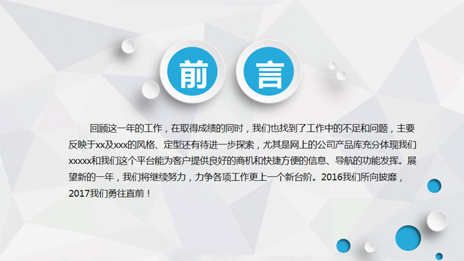 超强有用年终总结计划PPT模板。一套年终工作总结新年工作计划幻灯片模板,微粒体设计风格,共34页,大气有用,页面丰富,框架结构完整。