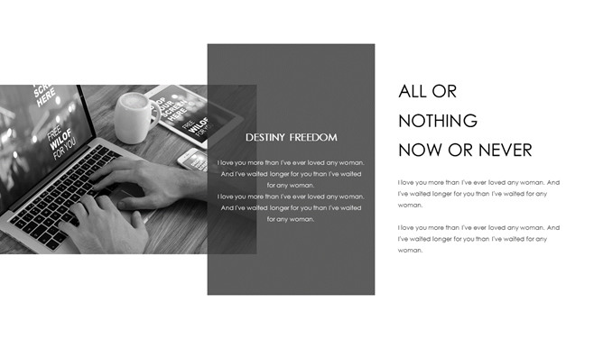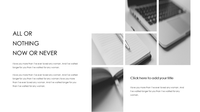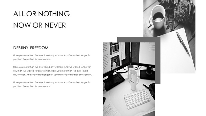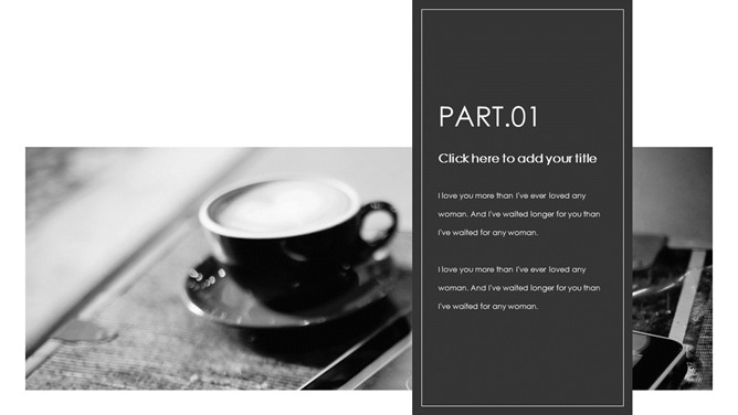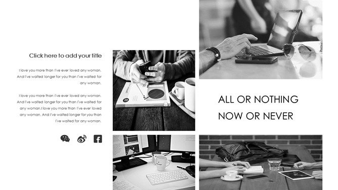 素雅文艺是非图文PPT模板。一套精美文艺范幻灯片模板,素雅是非配色,以图文排版页面为主。