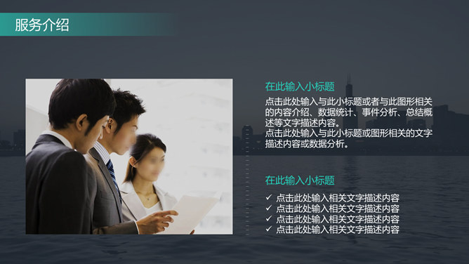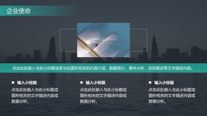 大气企业公司介绍简介PPT模板。一套公司企业介绍幻灯片模板,大气商务风,大图布景,有科技感,动态播放作用。