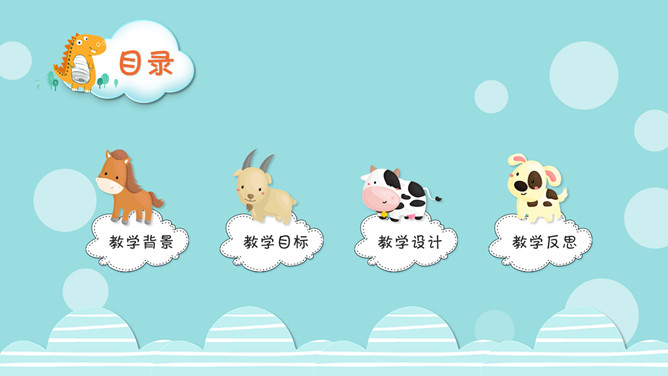 卡通小动物说课课件PPT模板。一套卡通风格幻灯片模板,可爱小动物装修,合合适适幼儿园、小学教学课件运用。