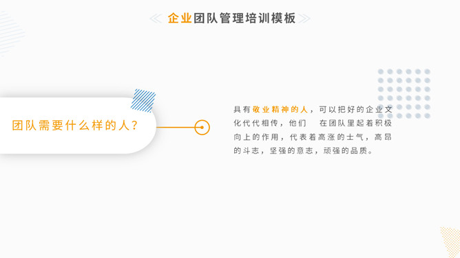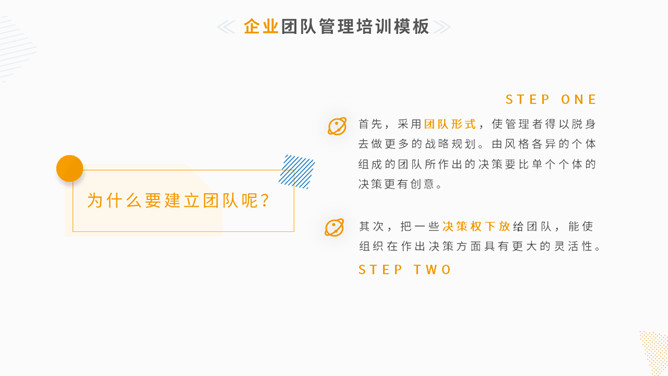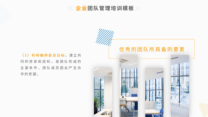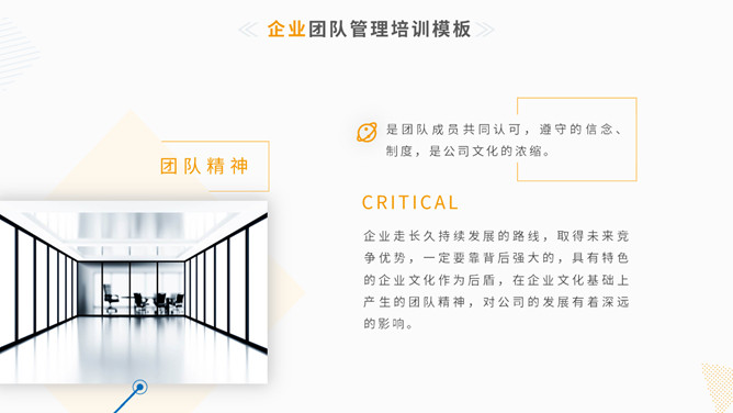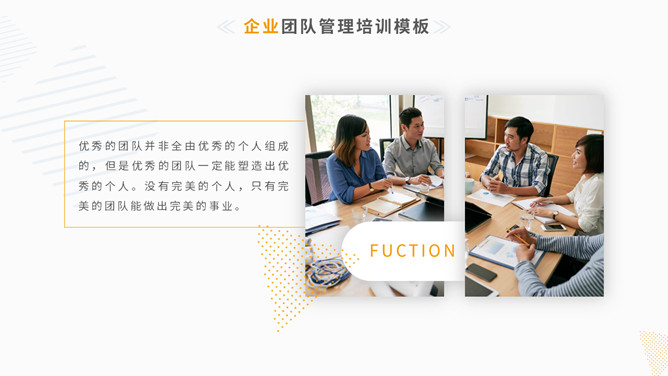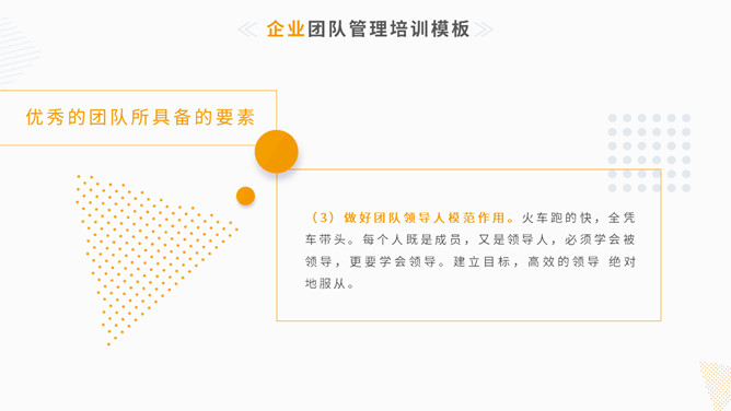 清新简约团队管理训练PPT模板。一套团队管理训练课件幻灯片模板,简练小清新设计风格,黄色主色调,动态播放。