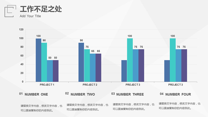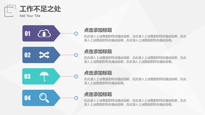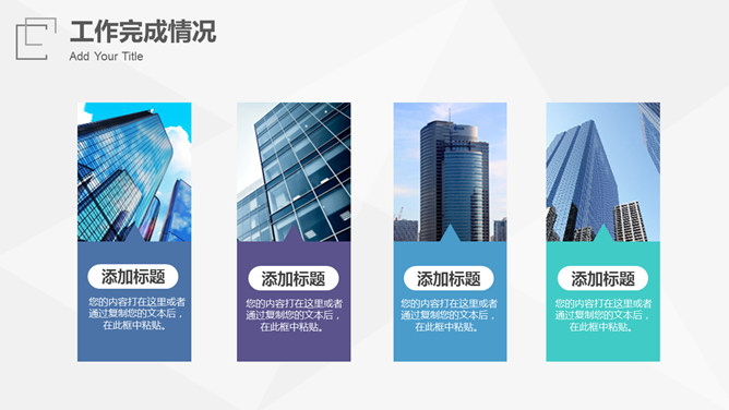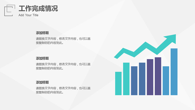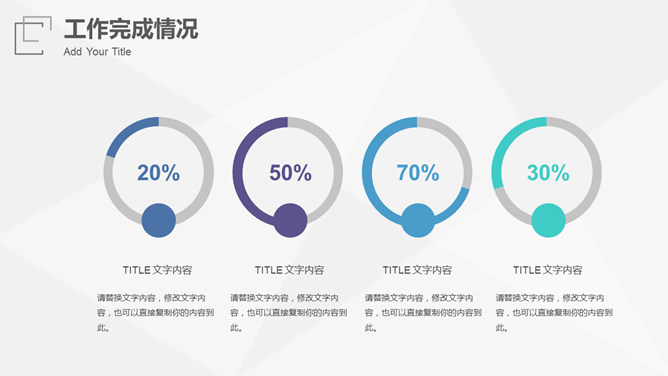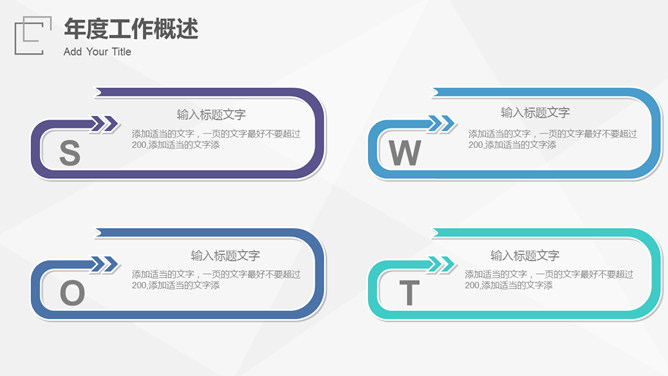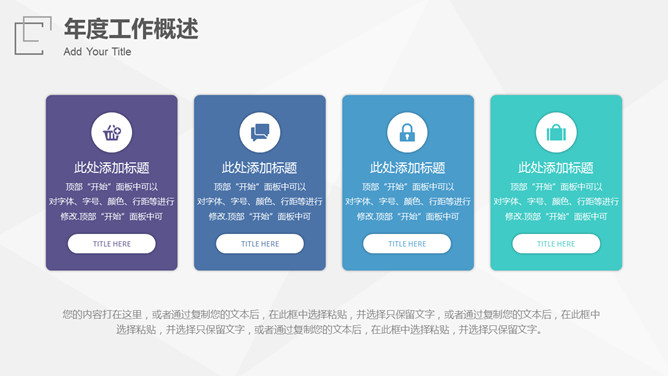 极简渐变工作总结报告PPT模板。一套工作报告总结报告幻灯片模板,极简设计风格,时尚青紫渐变配色。