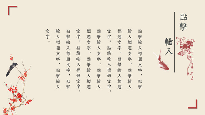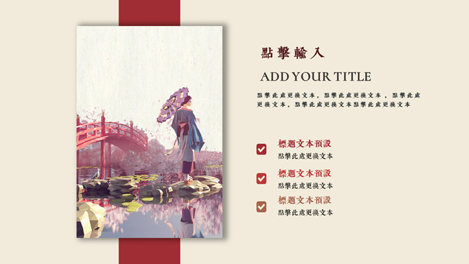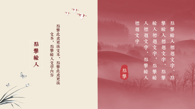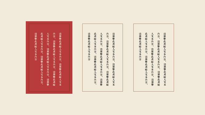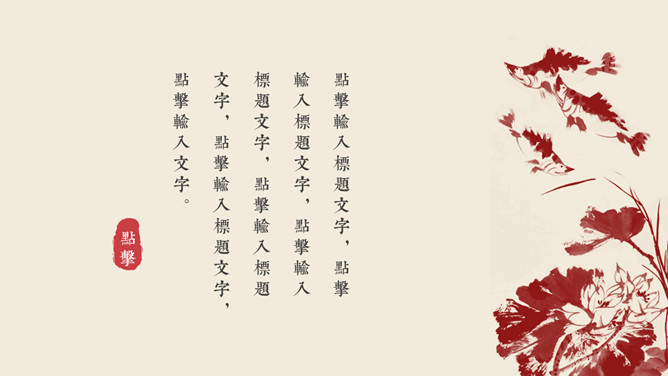 红袖添香唯美中国风PPT模板。一套唯美古典中国风幻灯片模板,砖赤色主色调,动态播映,精约且很有规划感。