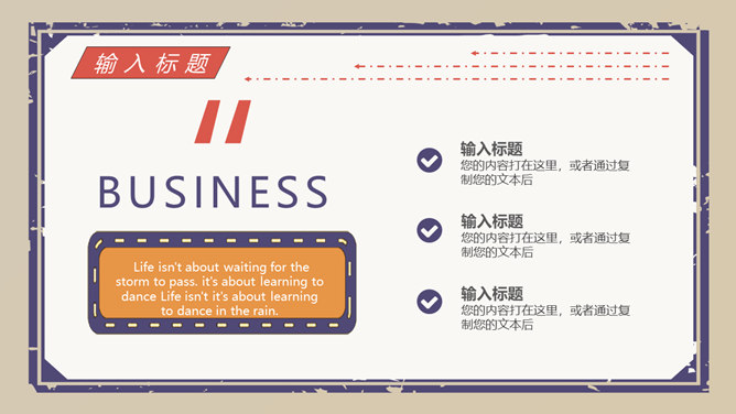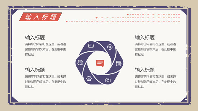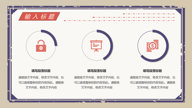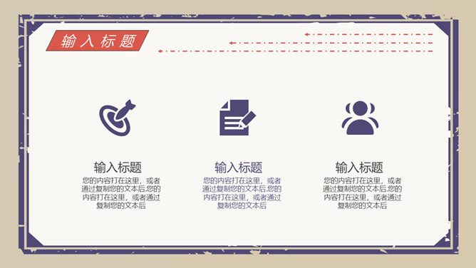 创意复古民国风PPT模板。一套精巧创意幻灯片模板,民国风格规划,复古做旧作用,动态播映作用,适合多种主题。