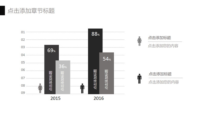 个性素雅黑灰商务PPT模板。一套大气商务风格幻灯片模板,个性黑灰配色,简约大方,图形图表页面丰富。