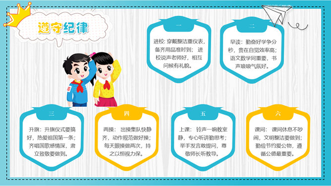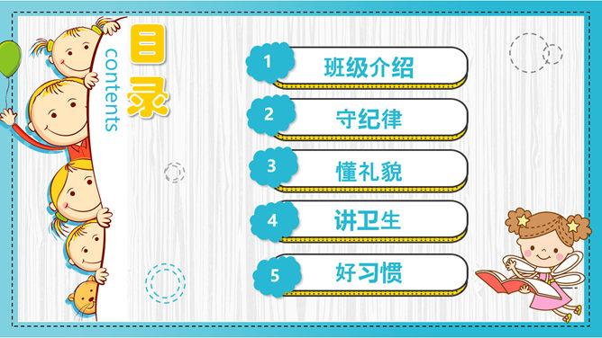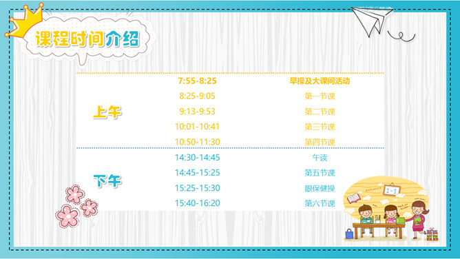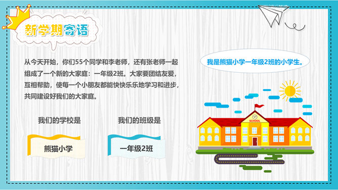 卡通开学第一课返校PPT模板。一套新学期开学返校第一课幻灯片模板,规划精美,卡通风格,运用字体:华文琥珀。
