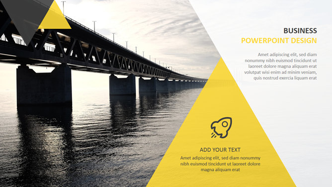 跨海大桥时髦商务PPT模板。一套大气时髦商务幻灯片模板,雄伟跨海大桥背景,几何形状色块拼接设计。