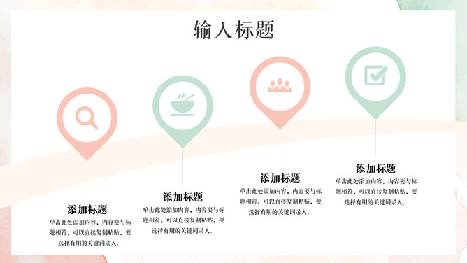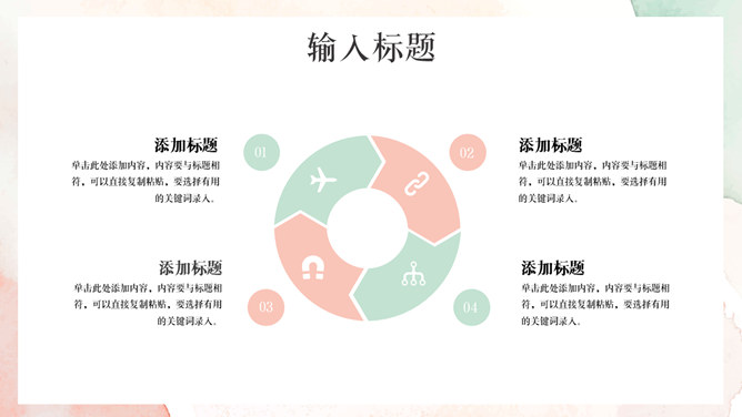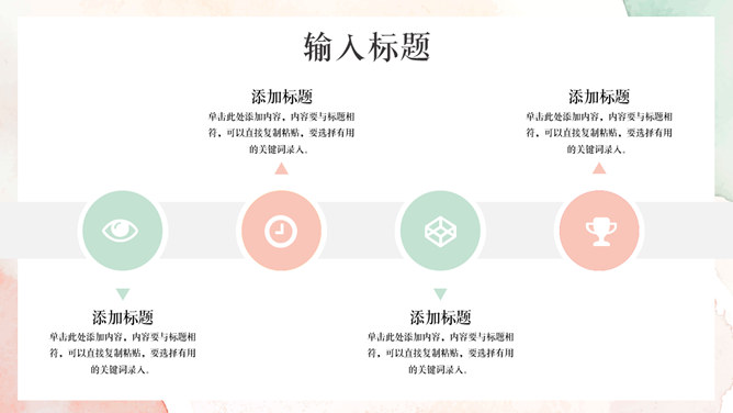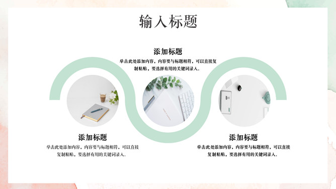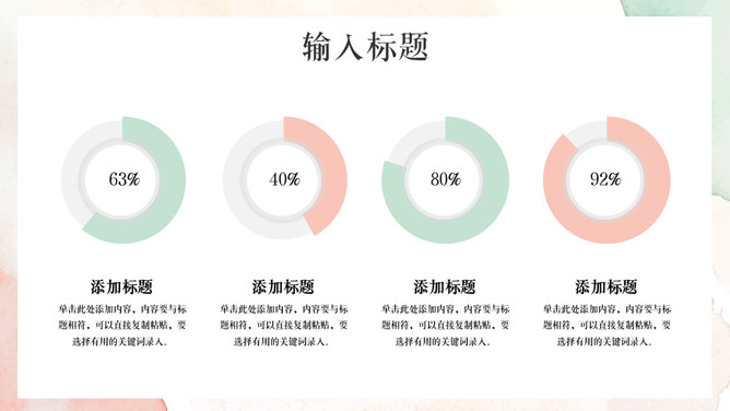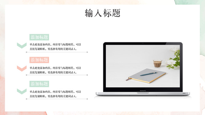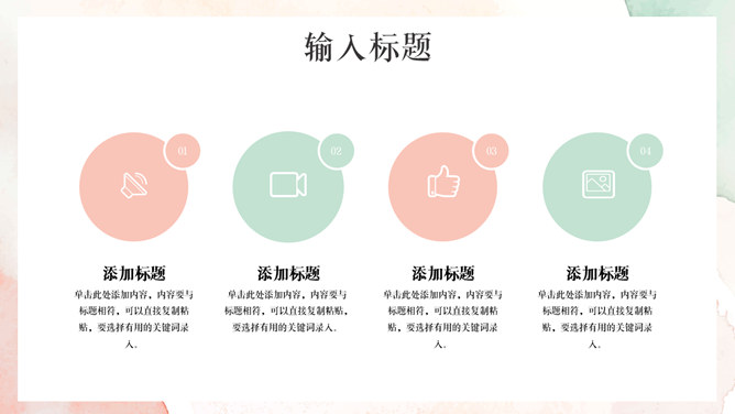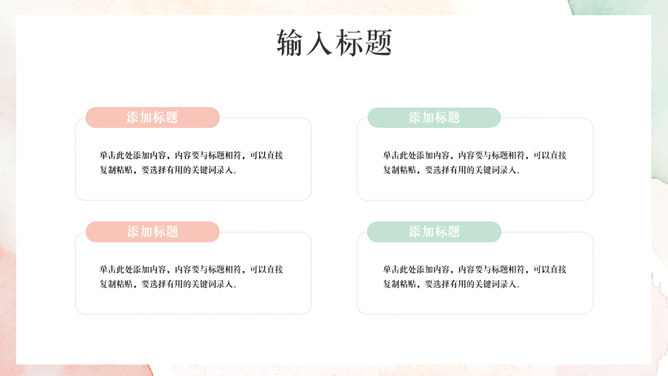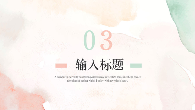 淡雅晕染水彩通用PPT模板。一套简练设计幻灯片模板,淡雅莫兰迪配色,晕染水彩作用布景,适合工作汇报等用处。