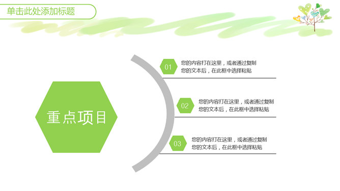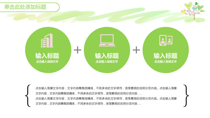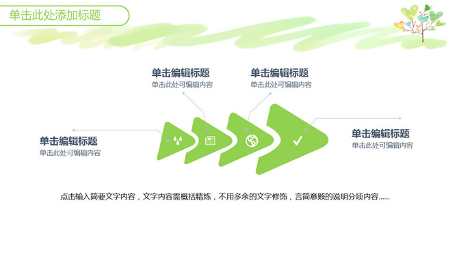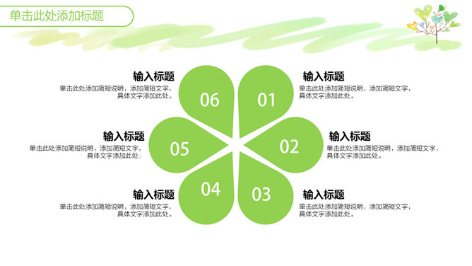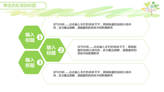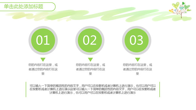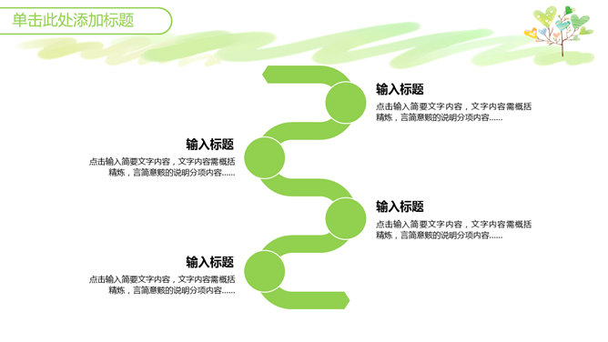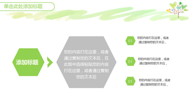 心爱小清新心形小树PPT模板。一套小清新幻灯片模板,绿色主色调,心爱卡通心形小树背景,适合教学课件使用。