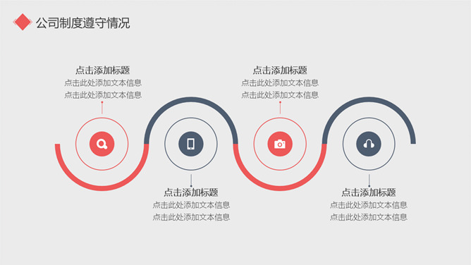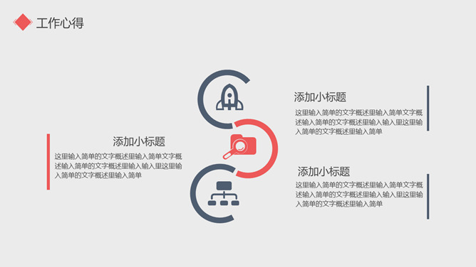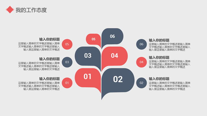 极简试用期转正述职陈述PPT模板。一套试用期职工转正作业述职陈述模板,灰色布景,极简设计,红蓝配色。