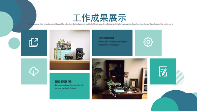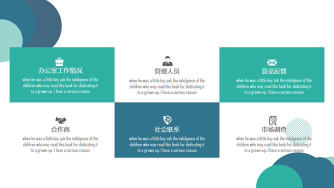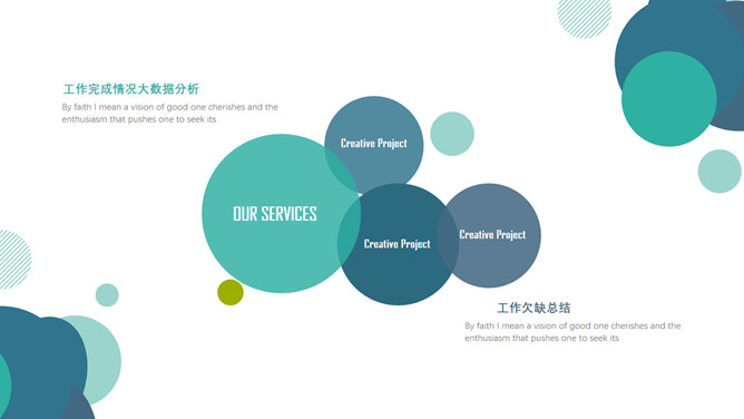 圆圈泡泡工作汇报PPT模板。一套工作汇报总结幻灯片模板,圆形圆圈泡泡装修,动态播放,简约新鲜。