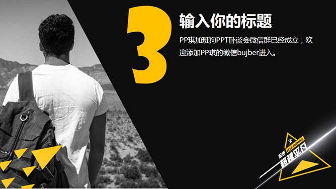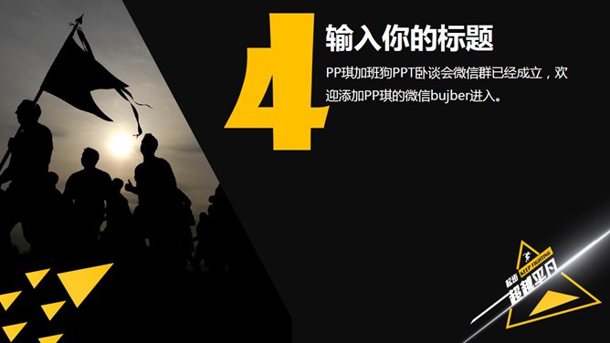 公司职工激励方案PPT模板。一份合适制造职工激励方案的幻灯片模板,黑色背景,黄色主色调,很多使用努力奋斗拼搏进步类的图片设计。建议装置字体:汉仪菱心体简、Britannic Bold、Showcard Gothic,以到达最佳作用。
