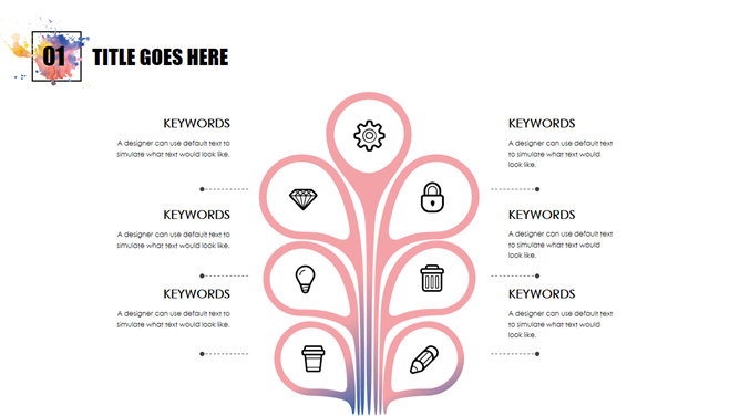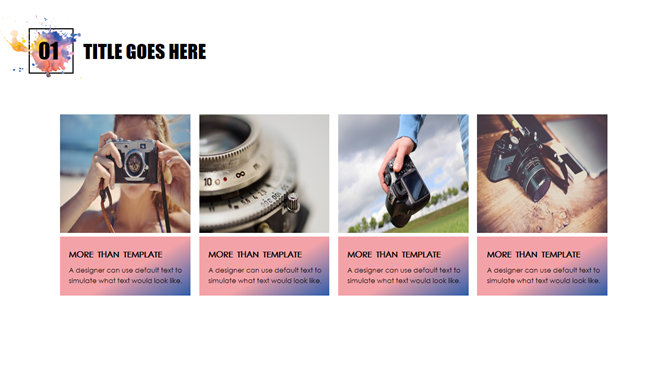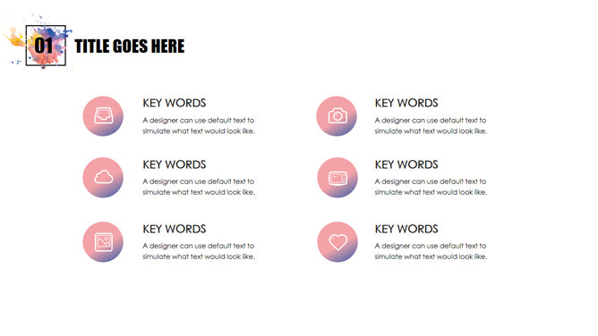 水彩墨迹艺术设计PPT模板。一套简约艺术设计幻灯片模板,水彩墨迹墨点作用色剂,图形图表页面丰厚,通用性强。
