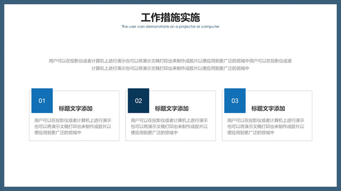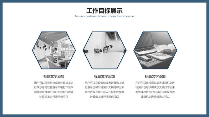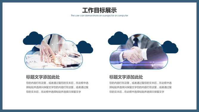简练商务风工作报告PPT模板。一套工作总结计划报告报告幻灯片模板,大气稳重深蓝主色调,简约大方。