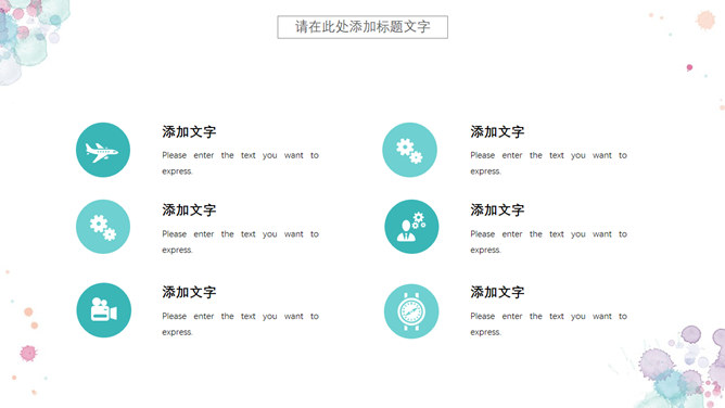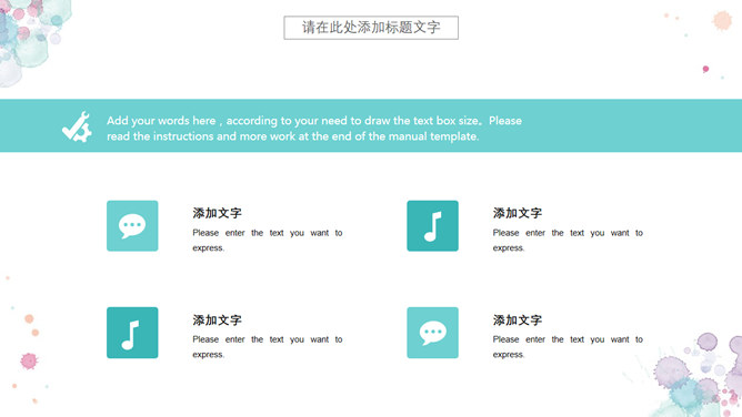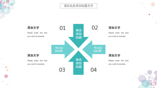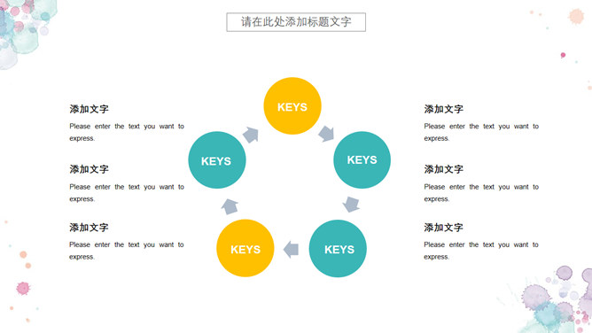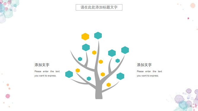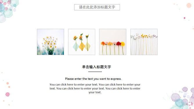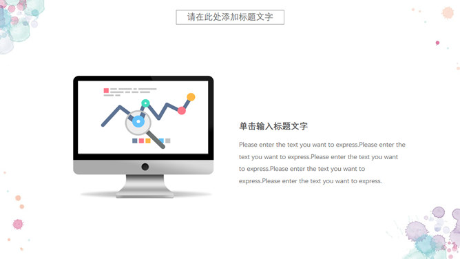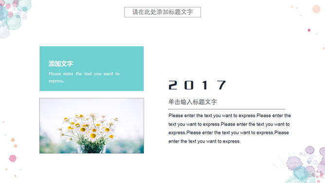 小新鲜水彩晕染斑驳PPT模板。一套精约小新鲜幻灯片模板,水彩喷溅斑驳作用装修,动态播映作用。