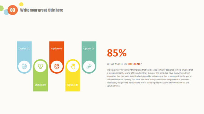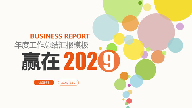 五颜六色泡泡年终总结PPT模板。一套年终工作总结汇报幻灯片模板,五颜六色泡泡装饰,页面简练,配色新鲜,美丽的动态效果。