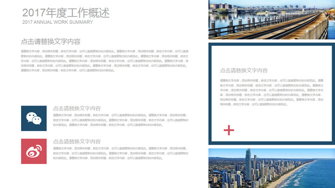 时尚大色块工作汇报PPT模板。一套工作总结汇报报告幻灯片模板,时尚大色块封面设计,蓝红简约图形图表。