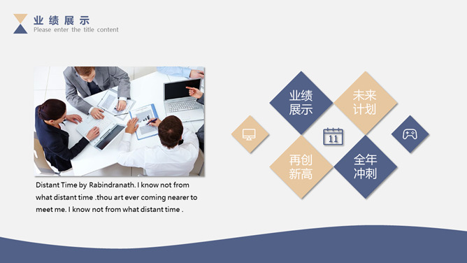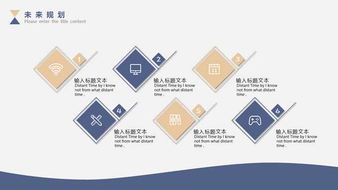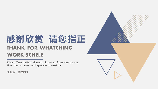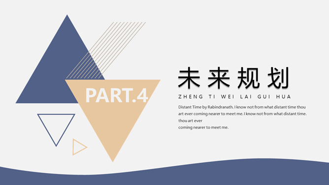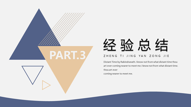 素雅简练三角通用PPT模板。一套精约通用幻灯片模板,素雅蓝金配色,三角形元素装饰,合适多种用处。