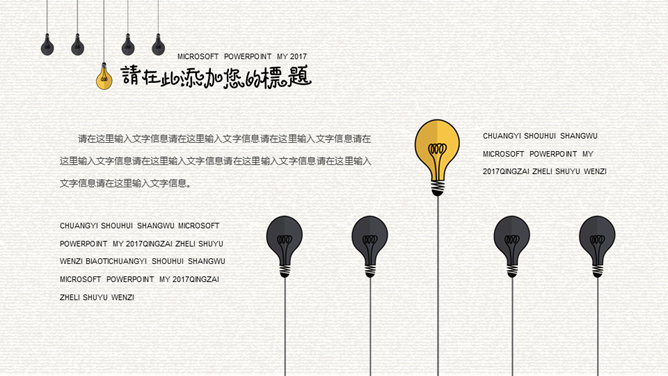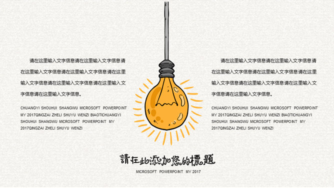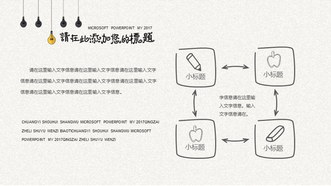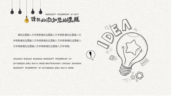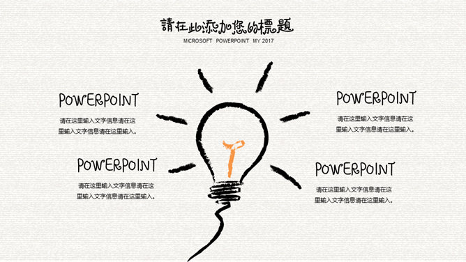 构思创意灯泡手绘PPT模板。一套精巧幻灯片模板,手绘规划,象征创意的灯泡等元素,使用字体:造字工房丁丁(非商用)常规体。