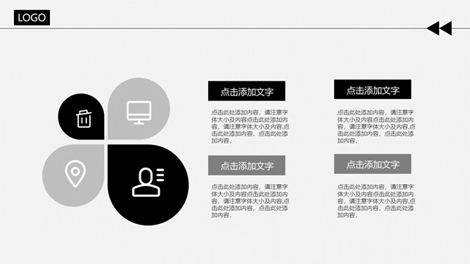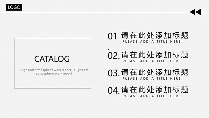 大气精约黑灰通用PPT模板。一套极简通用幻灯片模板,素雅黑灰配色,简洁大气,动态播放作用。