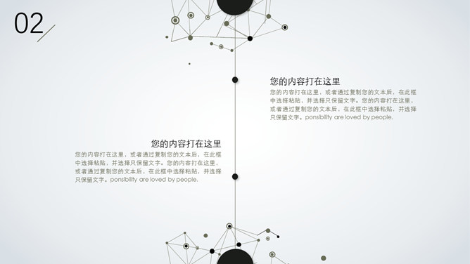 精约创意粒子点线规划PPT模板。一套时尚创意幻灯片模板,点线粒子科技风规划,精约排版配色,通用性强。