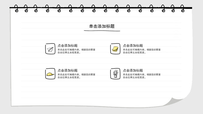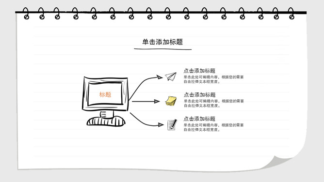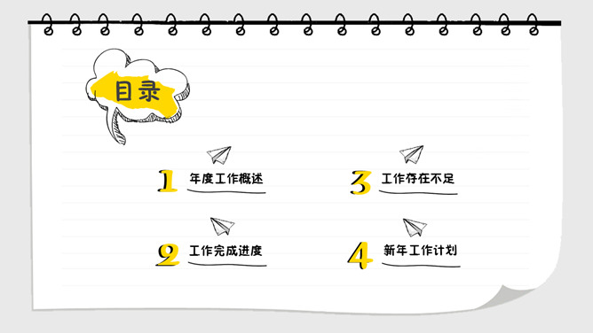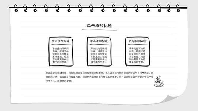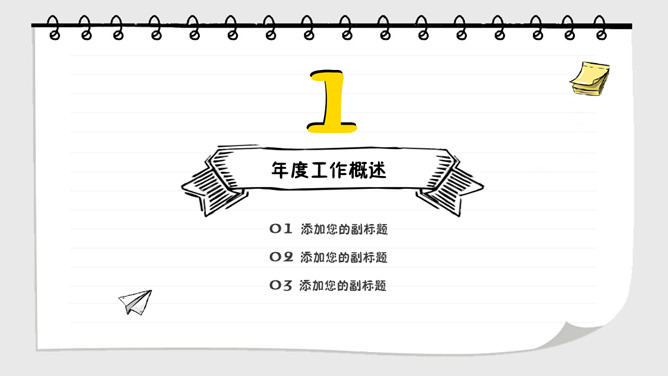 构思日记本手绘风PPT模板。一套工作汇报总结幻灯片模板,手绘设计风格,构思笔记本布景,动态播映效果。