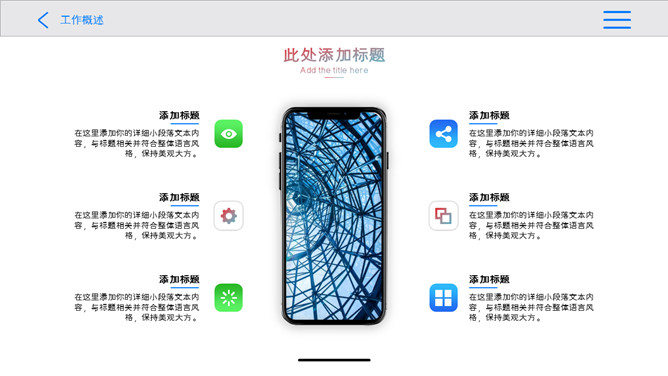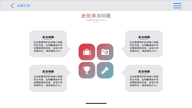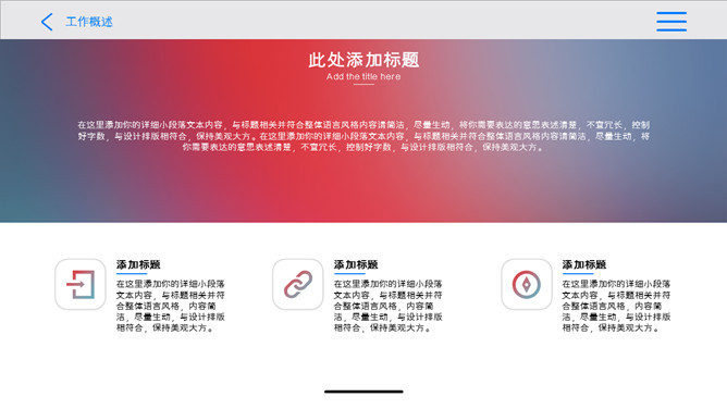 创意苹果IOS风格PPT模板。一套创意规划幻灯片模板,苹果IOS规划风格,五颜六色突变背景,半透明效果。