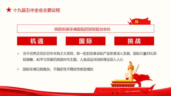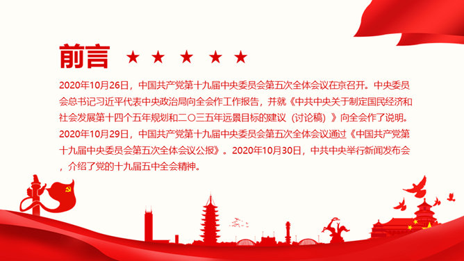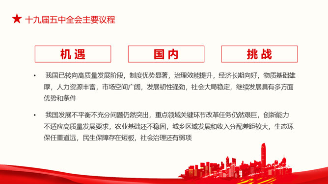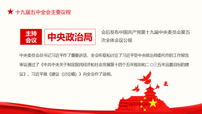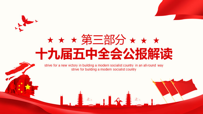 十九届五中全会解读PPT模板。第十九届中央委员会第五次全体会议,攫取全面建设社会主义现代化国家新胜利。