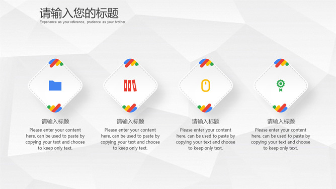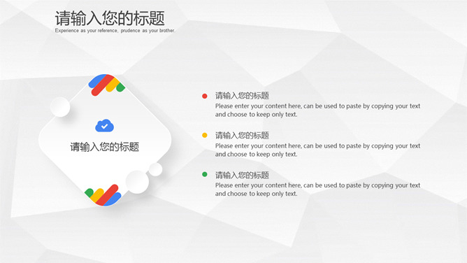 极简灰白微立体通用PPT模板。一套极简规划幻灯片模板,灰白低面多边形背景,微立体视觉效果,精约通用。
