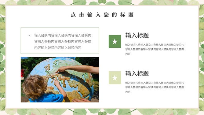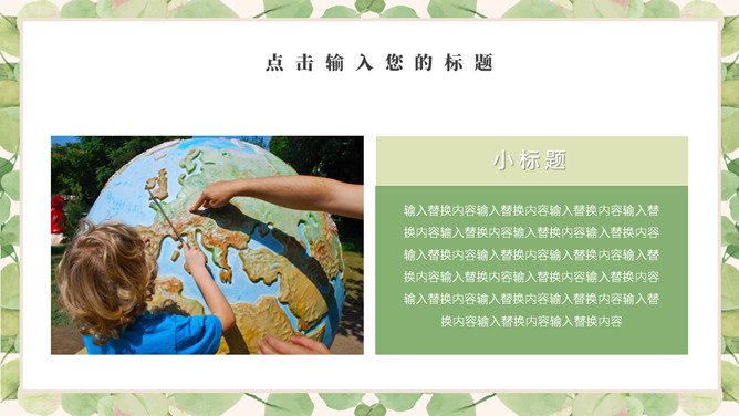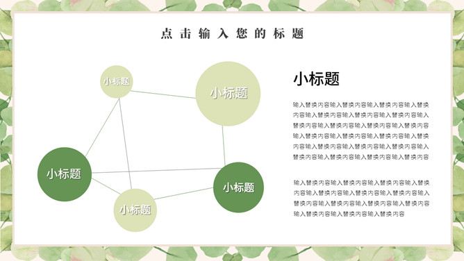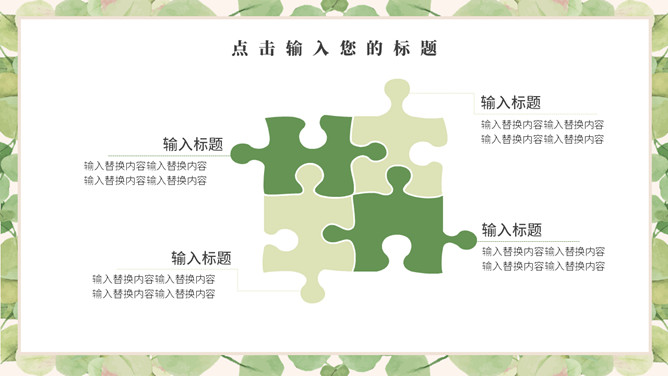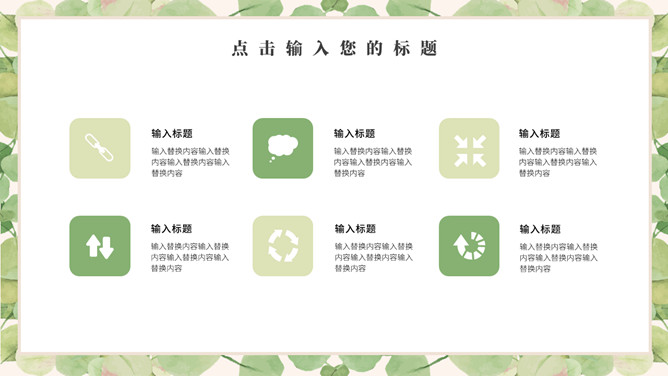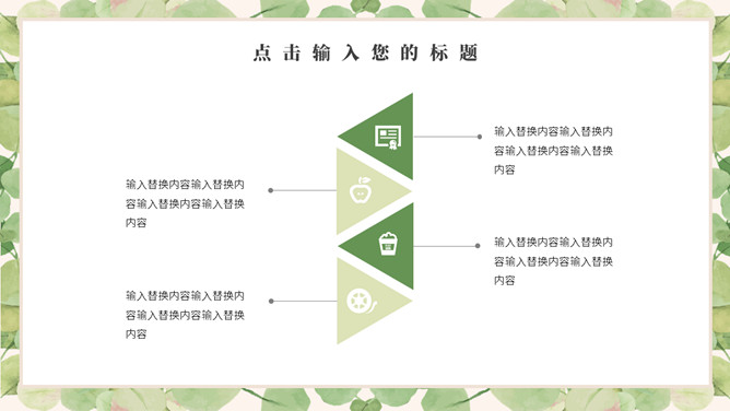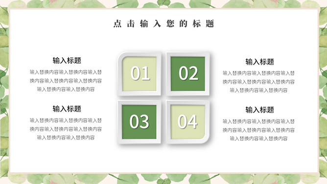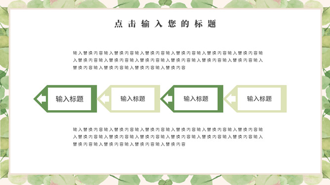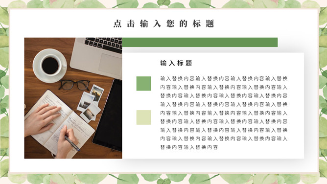 唯美浓艳新鲜绿色叶子PPT模板。一套精约设计幻灯片模板,唯美新鲜叶子背景装修,浓艳配色,适合多种用处。