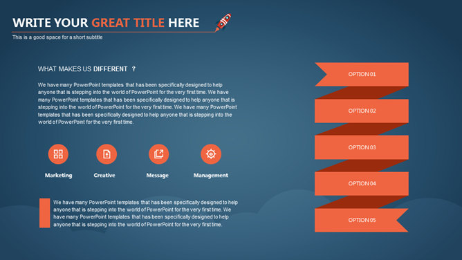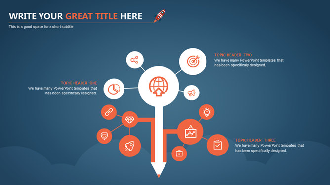 书本火箭星球卫星PPT模板。一份以小火箭为主题规划的幻灯片模板,可用于商务主题,也可用于教育类主题。