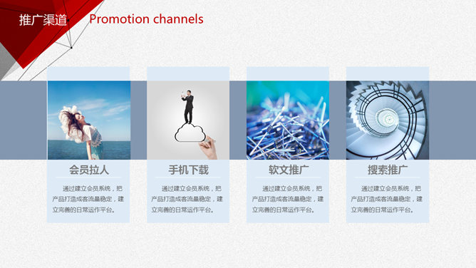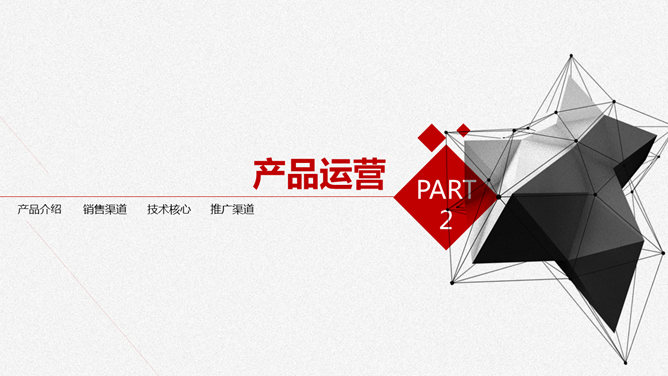 黑红几许商业计划书PPT模板。一套商业创业计划书幻灯片模板,经典黑红配色,创意几许图形箭头装饰,大气实用。