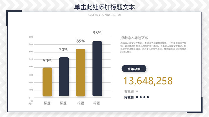 大气通用工作总结报告PPT模板。一套通用型工作报告总结幻灯片模板,波涛纹理背景,蓝金配色,简洁大气商务风。