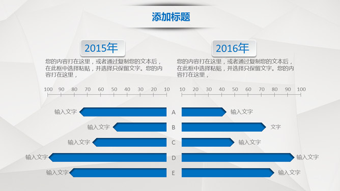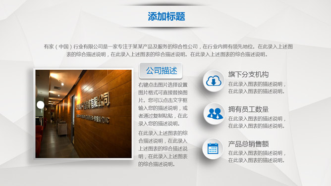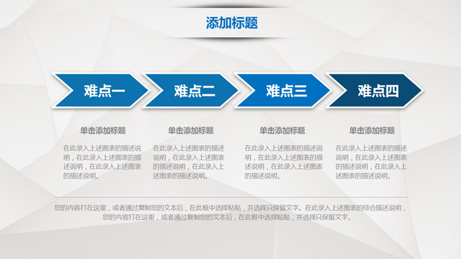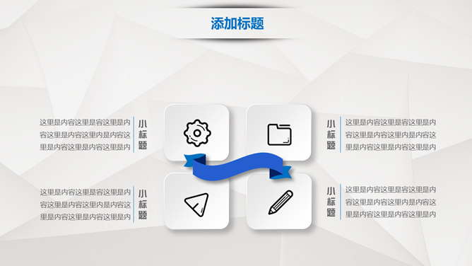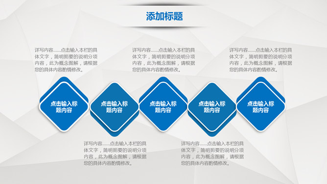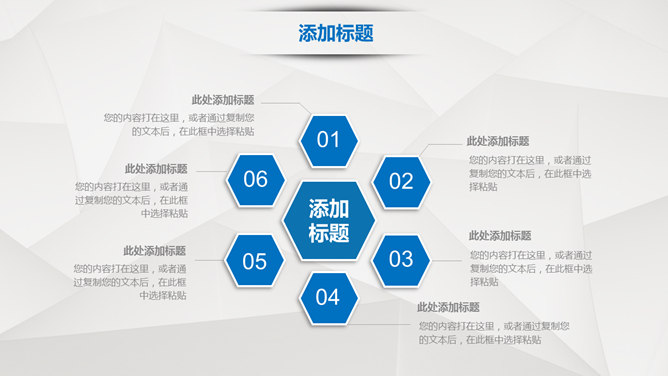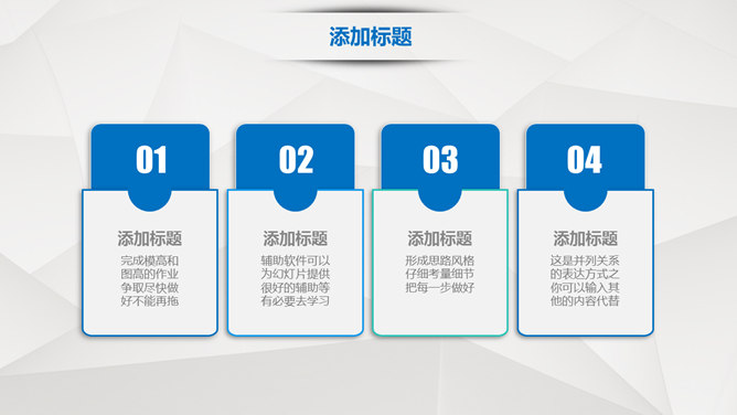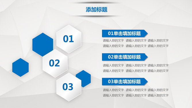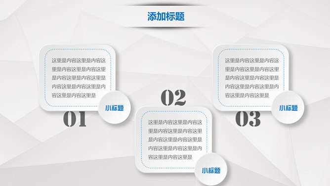 笼统几何背景商务通用PPT模板。一套大气多功能通用幻灯片模板,质感立体几何背景,蓝灰配色,适合商务报告、工作总结报告等用处。
