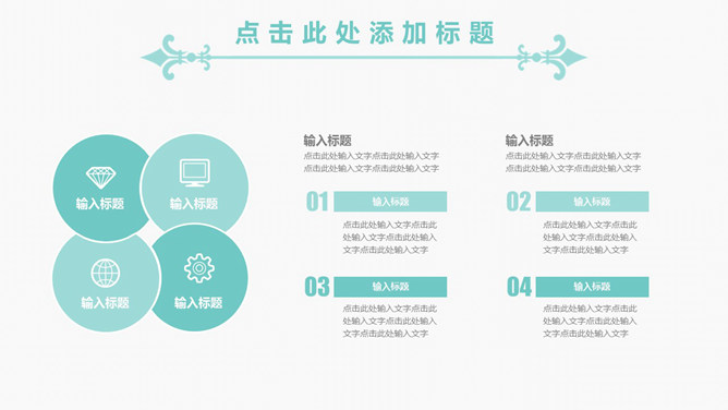 浓艳简洁新鲜动态PPT模板。新鲜浓艳色调,灰色背景,花纹装饰,动态演示效果,逻辑关系图表丰富,合适女生使用。