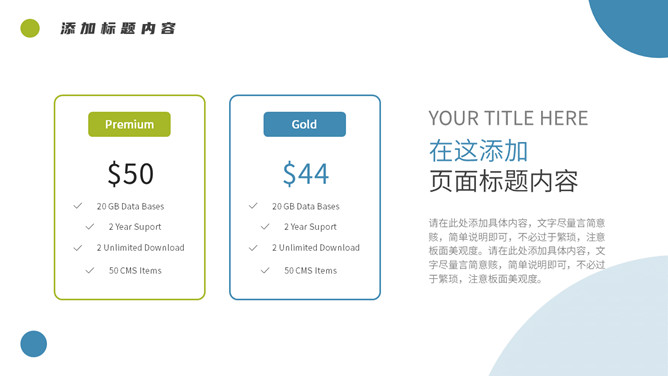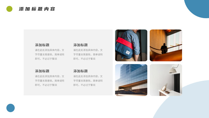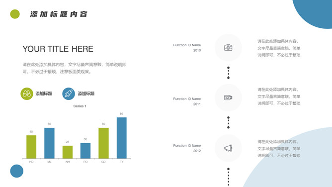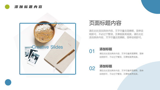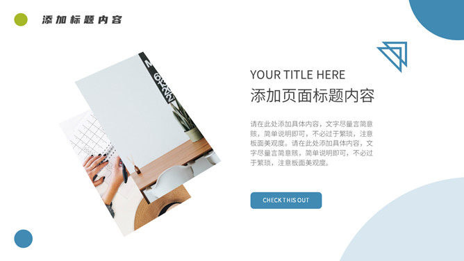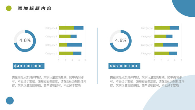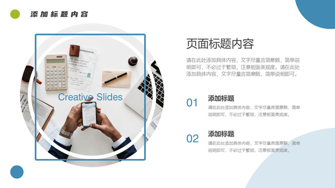 简约清新项目汇报PPT模板。一套项目汇报幻灯片模板,清新蓝绿配色,简约设计,圆形元素装饰,通用性强。
