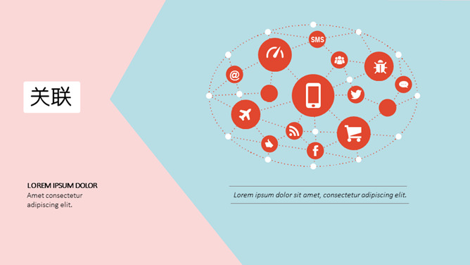 新鲜时尚粉蓝通用PPT模板。一套艺术时尚幻灯片模板,新鲜粉蓝配色,扁平化规划风格,通用性强。
