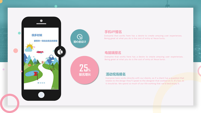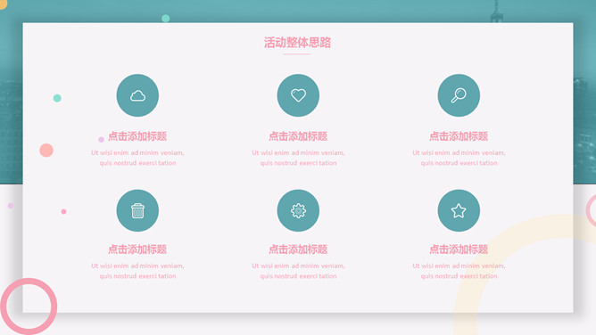 清新活动策划计划汇报PPT模板。一套精美活动策划计划汇报陈述幻灯片模板,清新粉绿配色,动态播映作用。