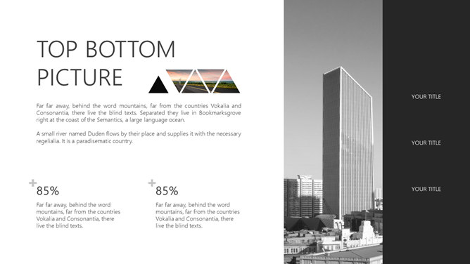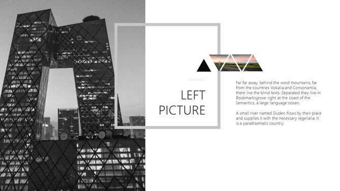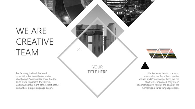 时髦艺术黑色杂志风PPT模板。一套欧美范幻灯片模板,灰黑配色,以图文排版页面为主,时髦艺术,动态播放作用。